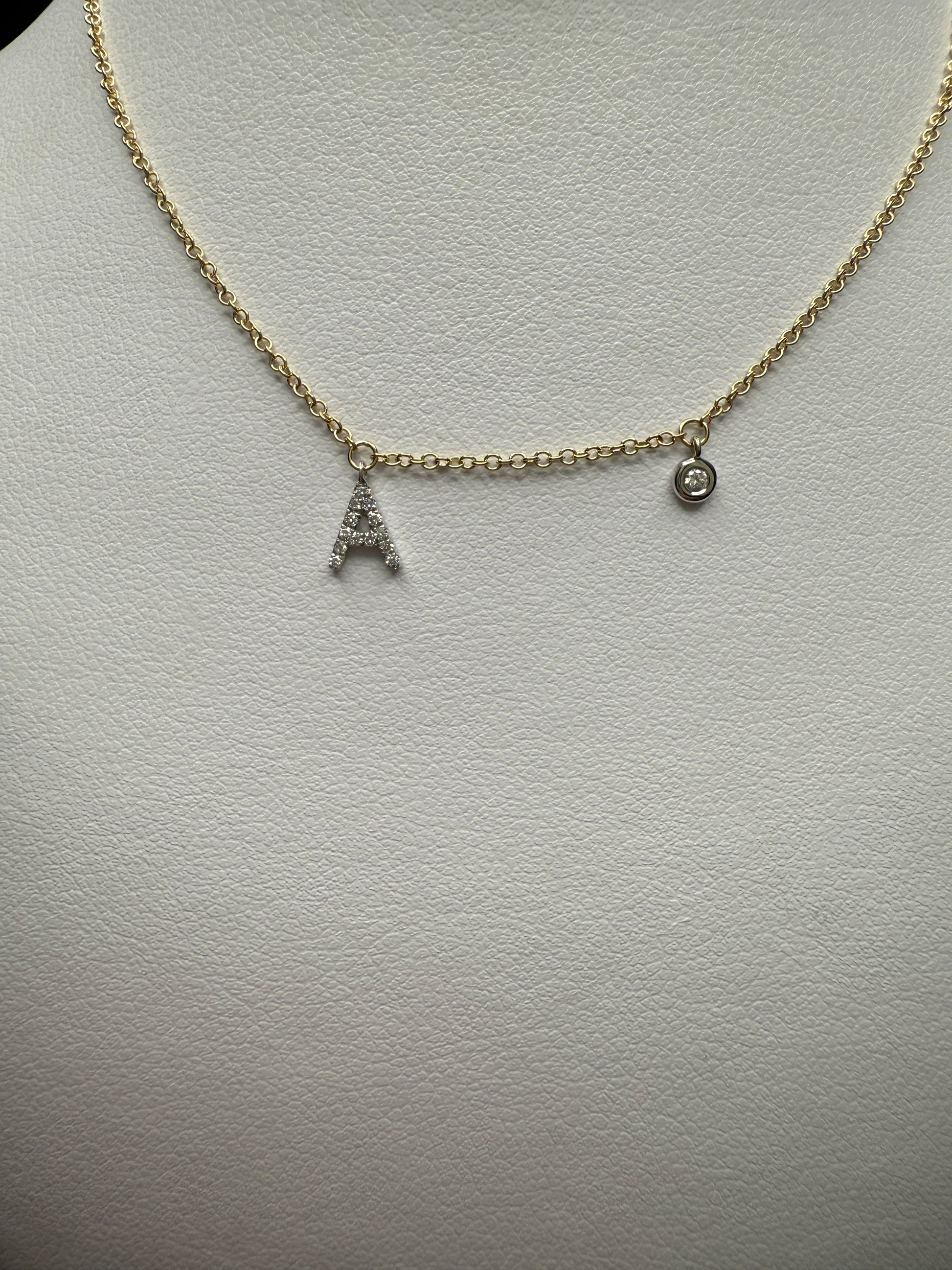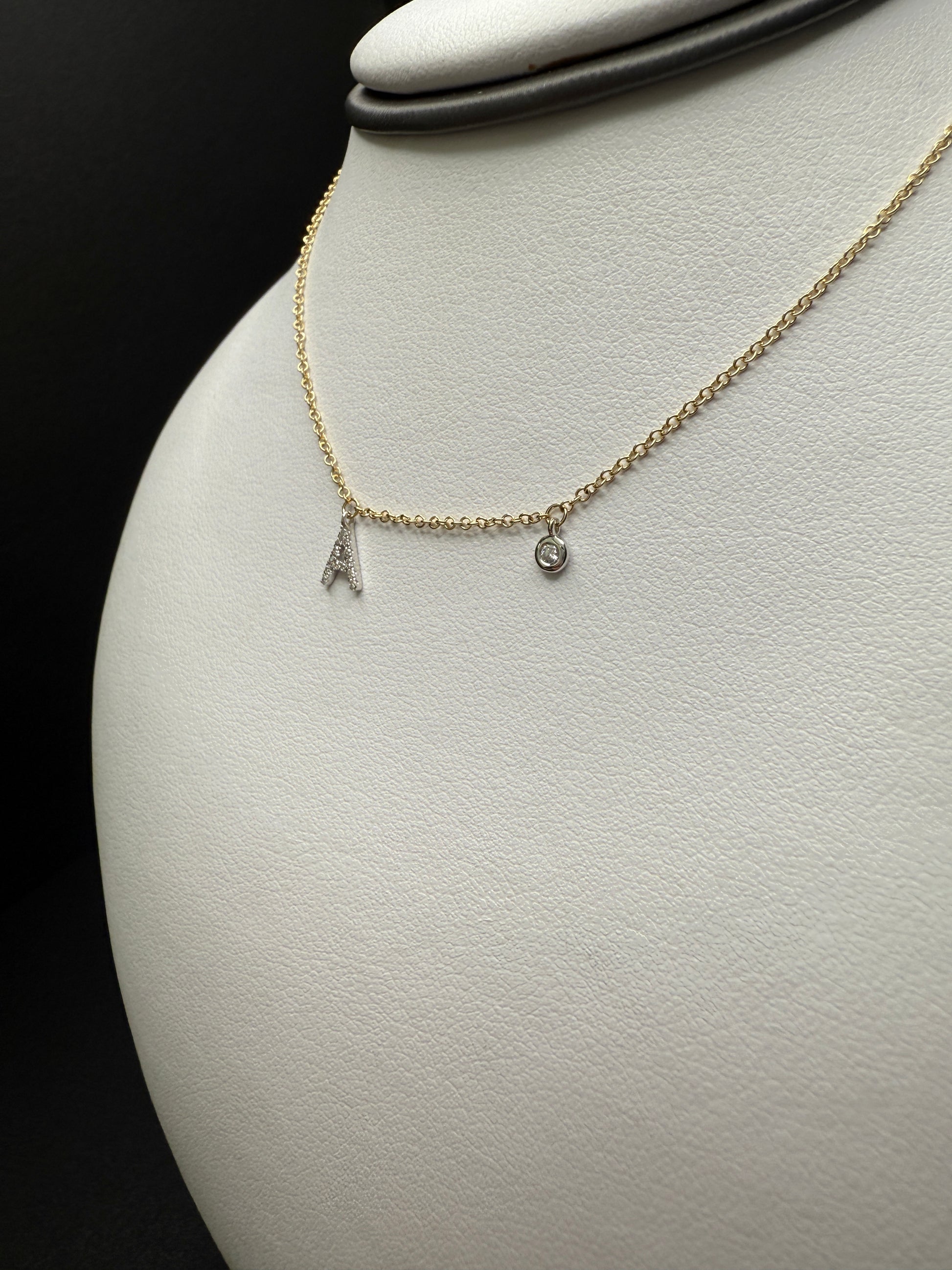 14k “A” Pendant Necklace W/ Natural Diamonds