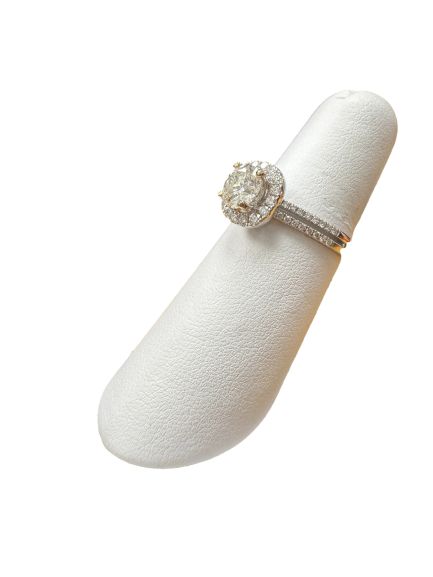 This exquisite 14k white gold ring features a stunning 1.20ct natural round-cut diamond at its center, surrounded by an elegant halo of sparkling natural diamonds totaling 0.55ct. Designed to captivate, this wedding ring shines brilliantly, enhancing your special moment with timeless beauty. Available in size 7, it can be expertly resized to ensure the perfect fit for you. Celebrate your commitment with a ring that combines classic elegance and dazzling craftsmanship.